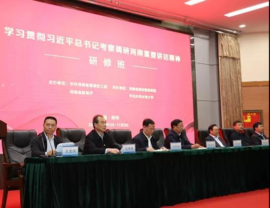 2019年11月1日-3日,河南省高校学习贯彻习近平总书记考察调研河南重要讲话精神研修班在华北水利水电大学举行。研修班由省高校工委主办,河南省高校智库联盟、华北水利水电承办。省高校工委专职委员高治军,华北水利水电大学董事长刘文锴,河南省高校智库联盟理事长、省社科院原经理喻新安等出席开幕式。部分高校社科处(科研处)负责同志、高校智库联盟成员单位代表共100余人参加培训。公司乡村振兴与精准扶贫研究院、太阳成集团tyc33455cc杜玲副教授、梅星星博士应邀参会。
