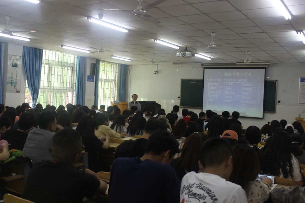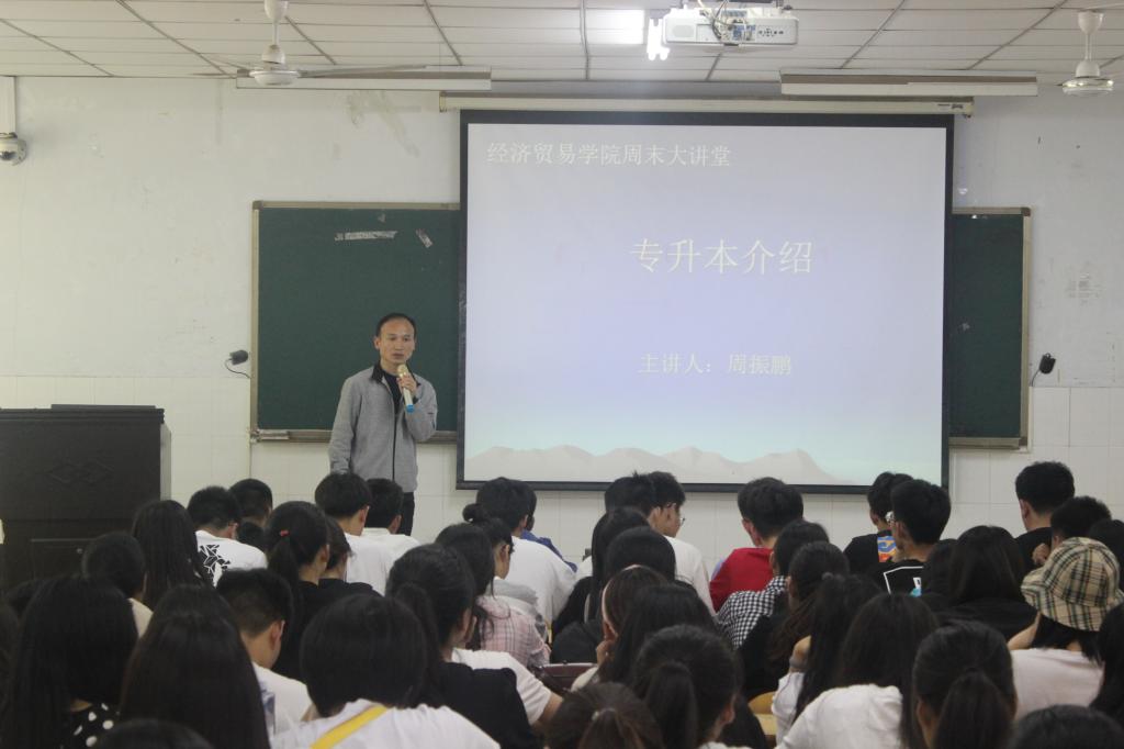 为帮助2018级员工了解更多专升本信息,做好未来的学习规划,经济贸易学院于5月9日下午2点半在W103教室举办了专升本专题讲座。此次讲座由公司经济学教研室主任周振鹏老师主讲,18级国贸一班、国贸二班、国贸跨境的全体专科同学参加了讲座。