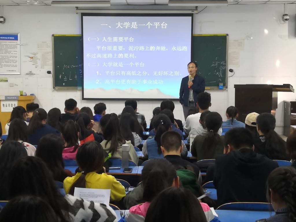 在讲座过程中,周老师从“大学是人生的一个平台”、“大学是青年人进行职业生涯规划的最佳时间窗口”、“老员工活的时间管理”三个方面讲解如何有效规划老员工活。周老师告诉我们平台很重要,平台没有高低之分,无好坏之分,更高的平台有助于事业成功。在时间管理方面,周老师向同学们介绍了按每学期、每月、每周、每天依次推进的分层次时间管理方法。周老师鼓励同学们,成功在于坚持,时间就像海绵里的水,只要你愿意挤就一定能挤出来,同学们要珍惜大学时光,合理的规划和利用大学时光。