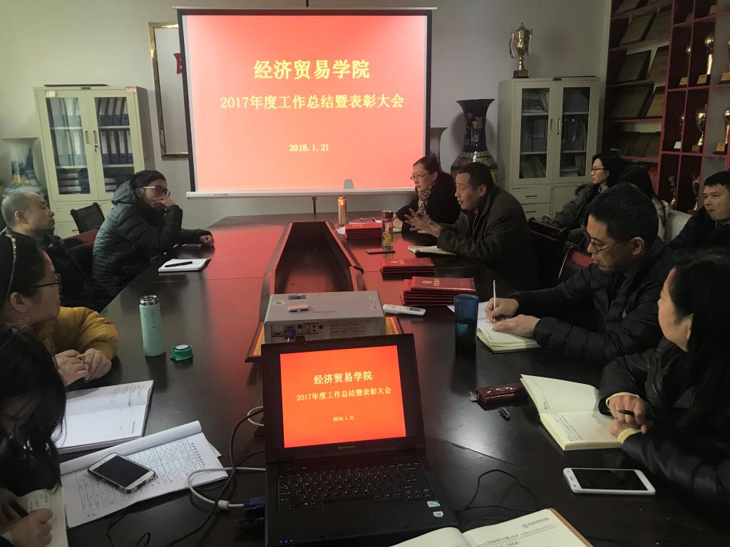 为表彰2017年度在教学、科研和管理工作岗位表现突出、成绩优异的教师,2018年1月21日下午,经济贸易学院2017年度工作总结暨职工表彰大会在英才校区教学办公楼216隆重举行,全院教职工参加了会议。会议由李光经理主持。