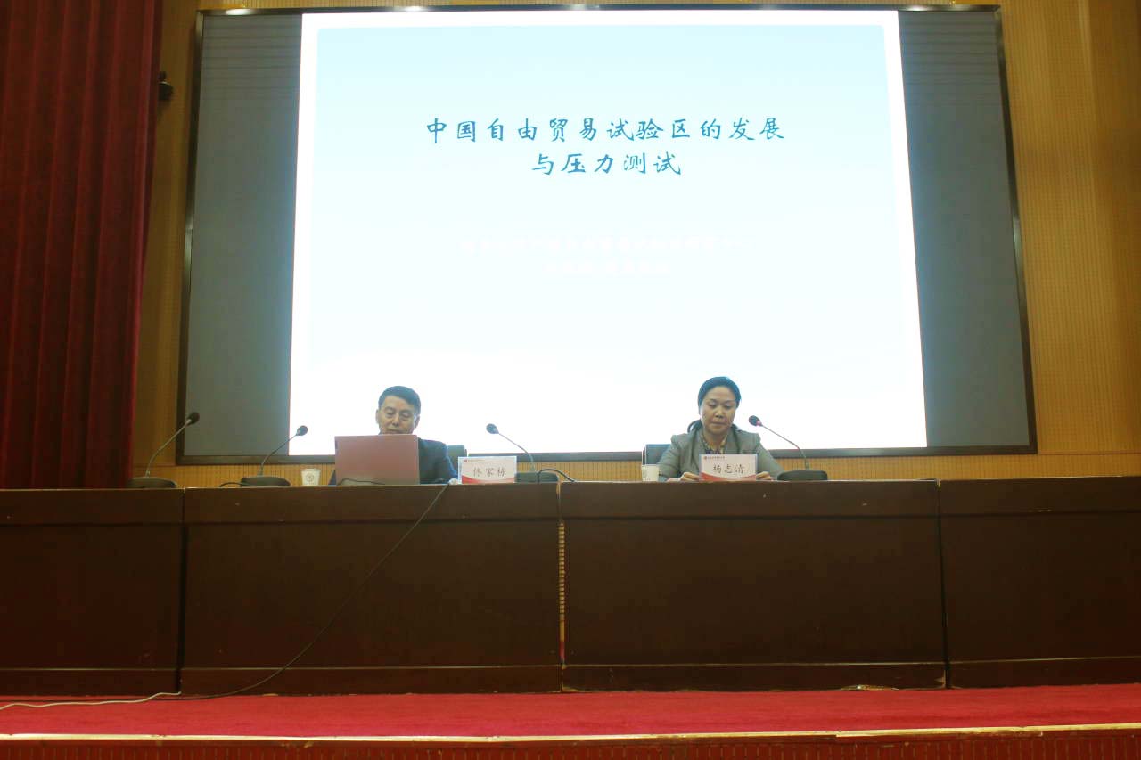 讲座中,佟教授首先对中美贸易战的影响进行了简单回顾,然后从中国自由贸易试验区的布局、我国自由贸易区及自贸港建设的机遇和挑战、建设自由贸易试验区的目的、试验区的改革取得的成绩、改革的探索,框架内的创新、加快自贸区和自贸港体制机制建设的建议等十六个方面进行简明扼要、耐心细致的讲解。最后,佟教授与公司师生进行了互动,师生们围绕郑州自由贸易区、郑州航空港等的建设及压力测试的指标、方式等问题进行踊跃提问。佟教授幽默风趣的解说与深入浅出的剖析,展现了其渊博的学识和独到的见解,给师生们带来了一场思想上的盛宴,使大家受益匪浅。