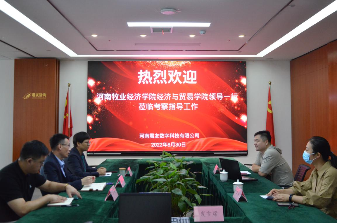 2022年8月30日,太阳成集团tyc33455cc副经理梅星星、农业经济教研室主任吴静一行赴河南君友数字科技有限公司就深化校企合作进行磋商交流。